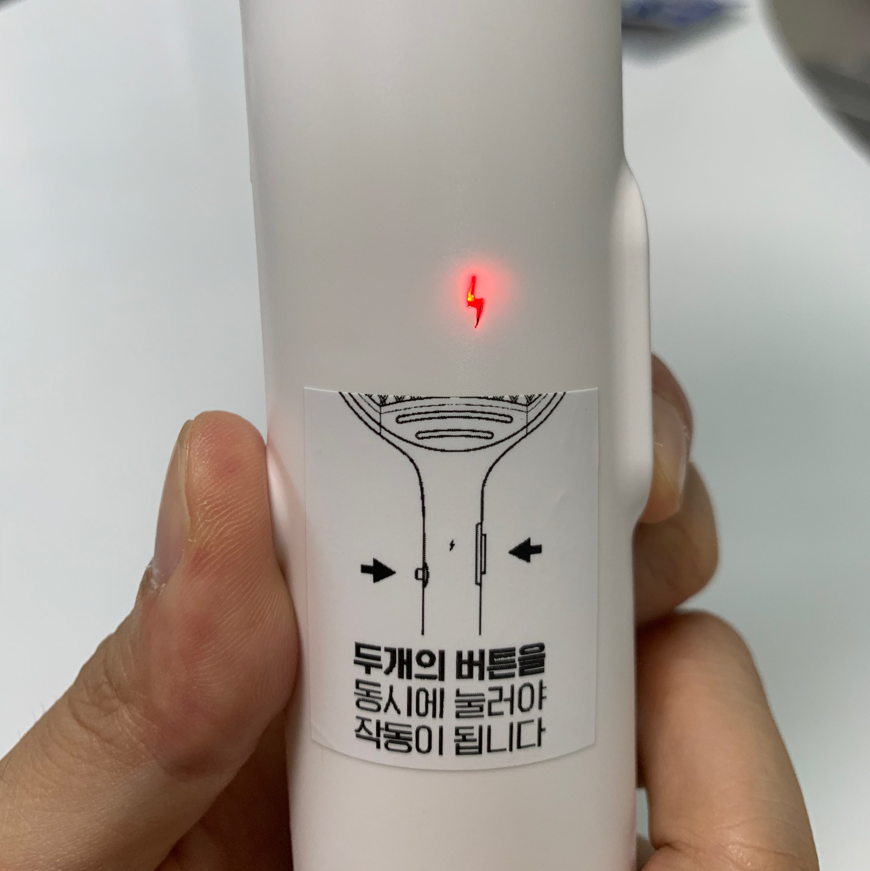 사진처럼 두 개의 버튼을 동시에 누르면 빨간불이 나오면서 작동한다는 표시가 뜹니다