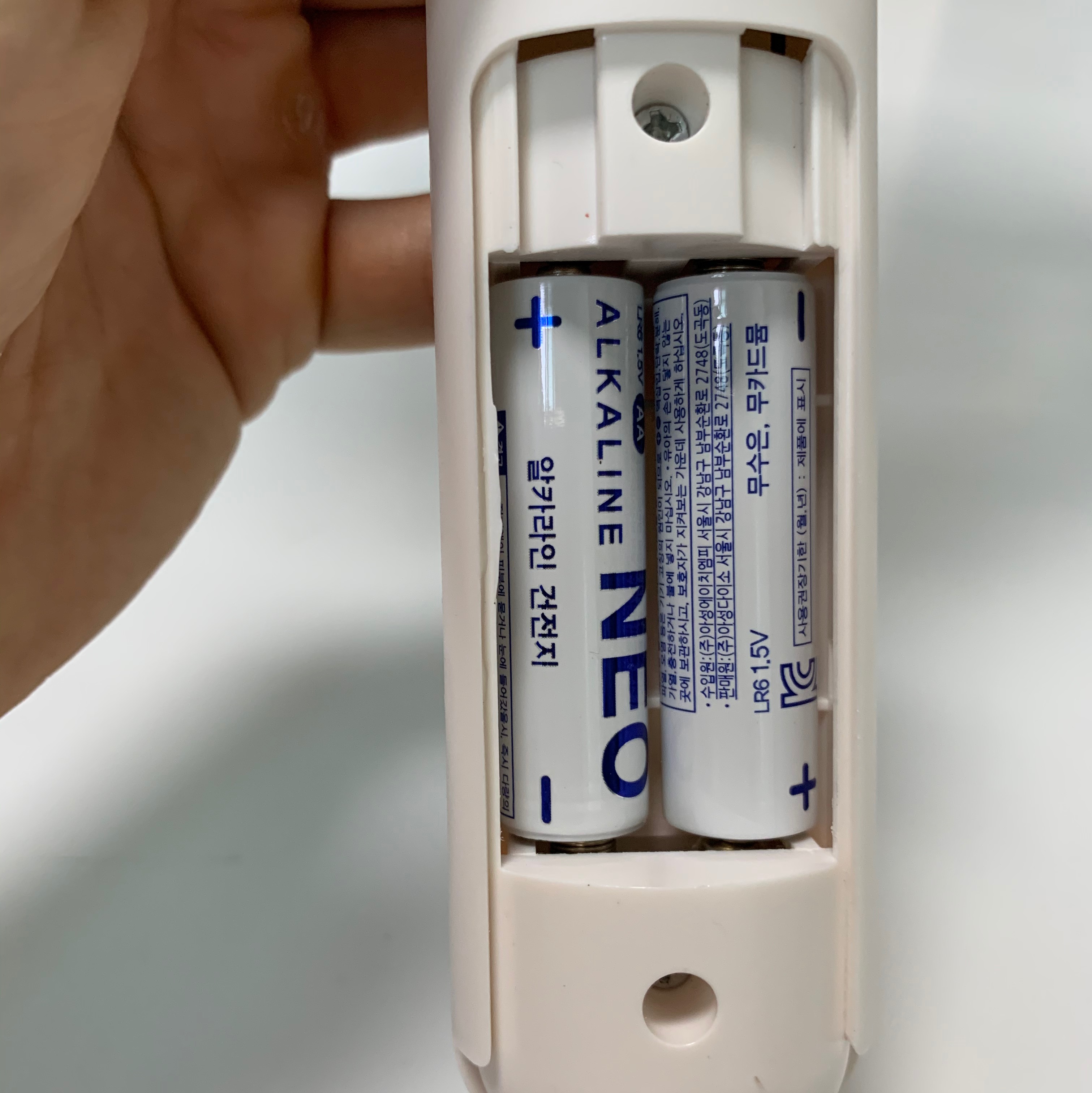 손잡이 뒤쪽에 보면 건전지 넣는 칸이 있으니 참고하세요